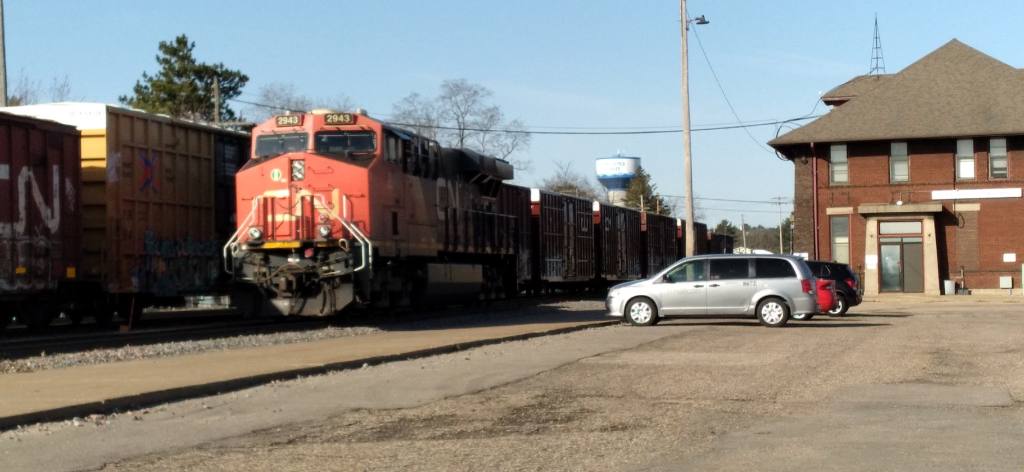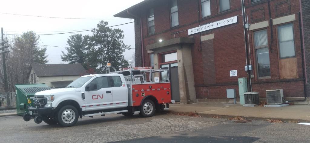 Picture was taken on 8-30-2024 looking east in front of the Stevens Point Depot.